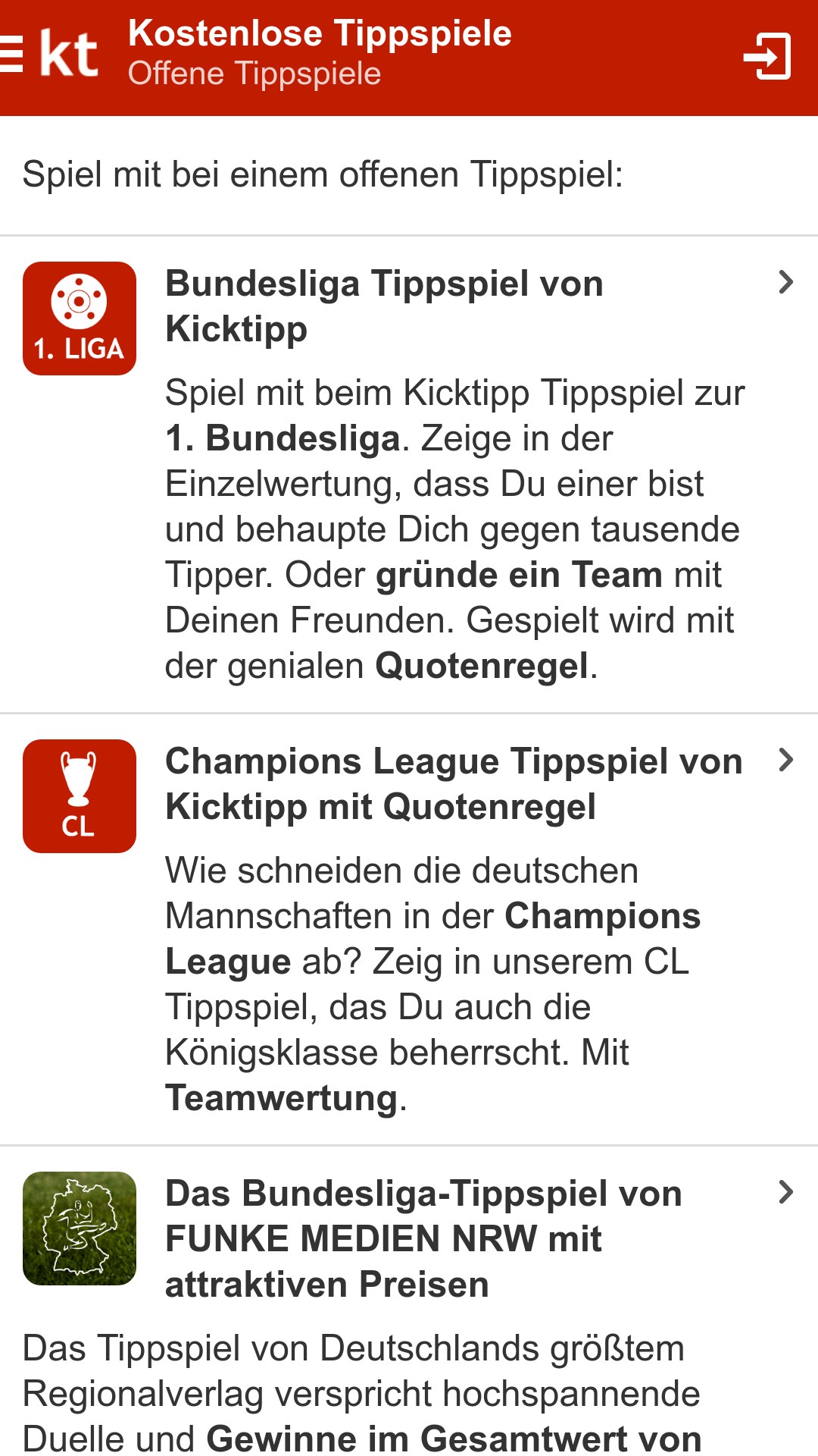 Kicktipp Tippspielvergleich Halbzeit App from halbzeit.app Kicktipp requires android os version of 3.4 and up. Kicktipp is currently available in the following countries: This app was rated by 1 users of our site and has an average. The latest version released by its developer is 75. Kicktipp organisiert online kostenlos tippgemeinschaften zu bundesliga, champions league und co. We are the most popular app for sports score predictions for the premier league, champions league, world cup, nba, euro 2020 and many more leagues and sports. Kicktipp has a rating of 4.5 on the play store, with 11258 votes. Kicktipp.com is tracked by us since march, 2016.